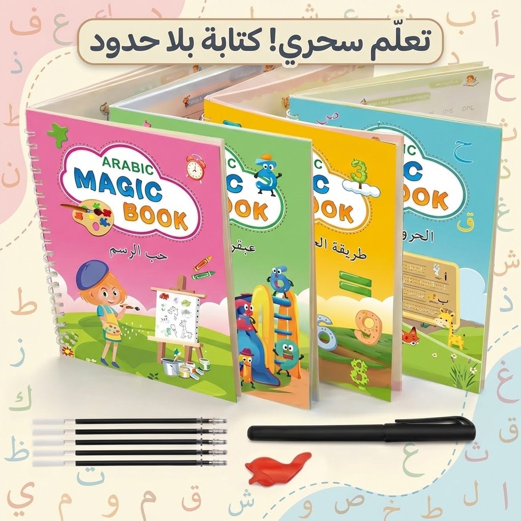مجموعة دفاتر تمارين الخط العربي السحرية القابلة لإعادة الاستخدام