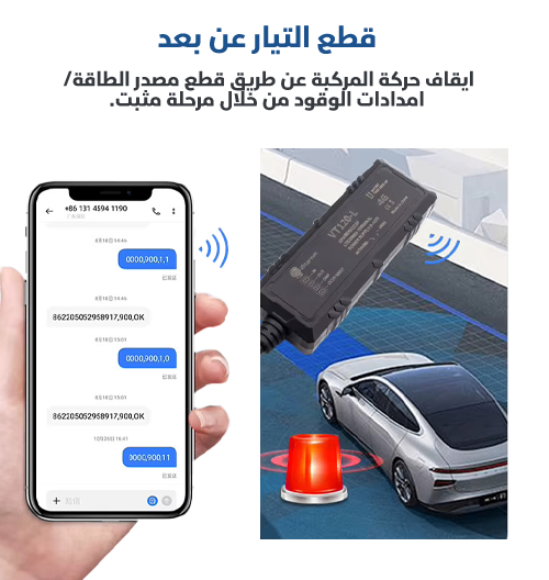 يشتمل جهاز تعقب GPS هذا على مرحل (Relay/ ريلاي). في حال تم سرقة مركبتك، يمكنك التحكم في سيارتك عن بعد على هاتفك، وقطع المحرك عن طريق إرسال أمر أو تطبيق SMS ، وستتوقف السيارة عن الحركة حتى تتلقى أمر SMS الخاص بك لتشغيل المحرك.