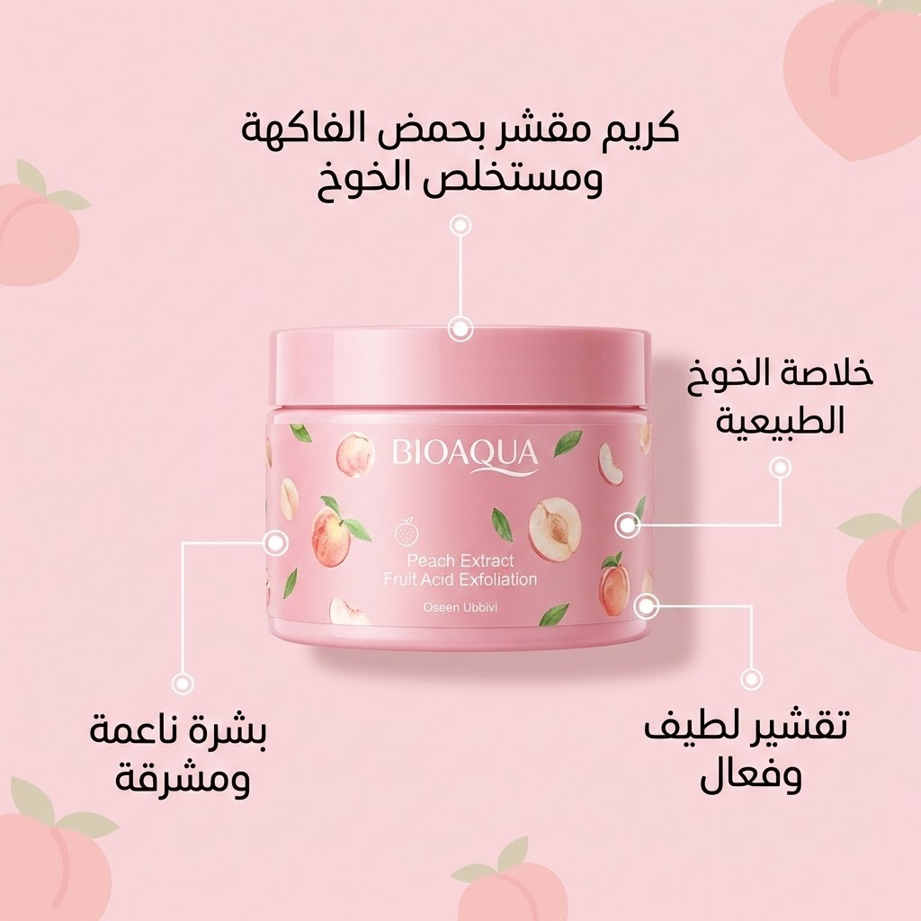 امنحي بشرتك نعومة ولمعانًا واضحًا من أول استخدام مع كريم التقشير بخلاصة الخوخ من BIOAQUA. تركيبة كورية متطورة غنية بأحماض الفواكه الطبيعية تساعد على إزالة خلايا الجلد الميت بلطف، وتنقية المسام، وتحفيز تجدد البشرة دون التسبب في الجفاف أو التهيج.