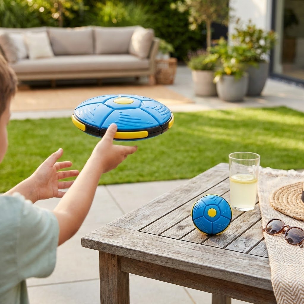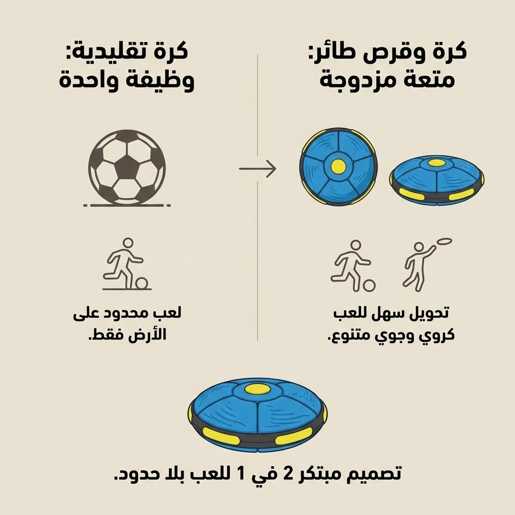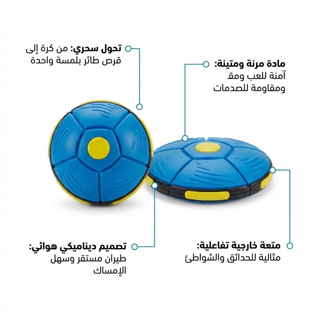 🔄 تحول سحري في ثوانٍ: اضغط عليها لتتحول إلى صحن طائر (Frisbee) وانظر إليها وهي تعود لشكل الكرة الأصلي تلقائياً أثناء الطيران، مما يضيف عنصر مفاجأة مذهلاً لكل رمية.