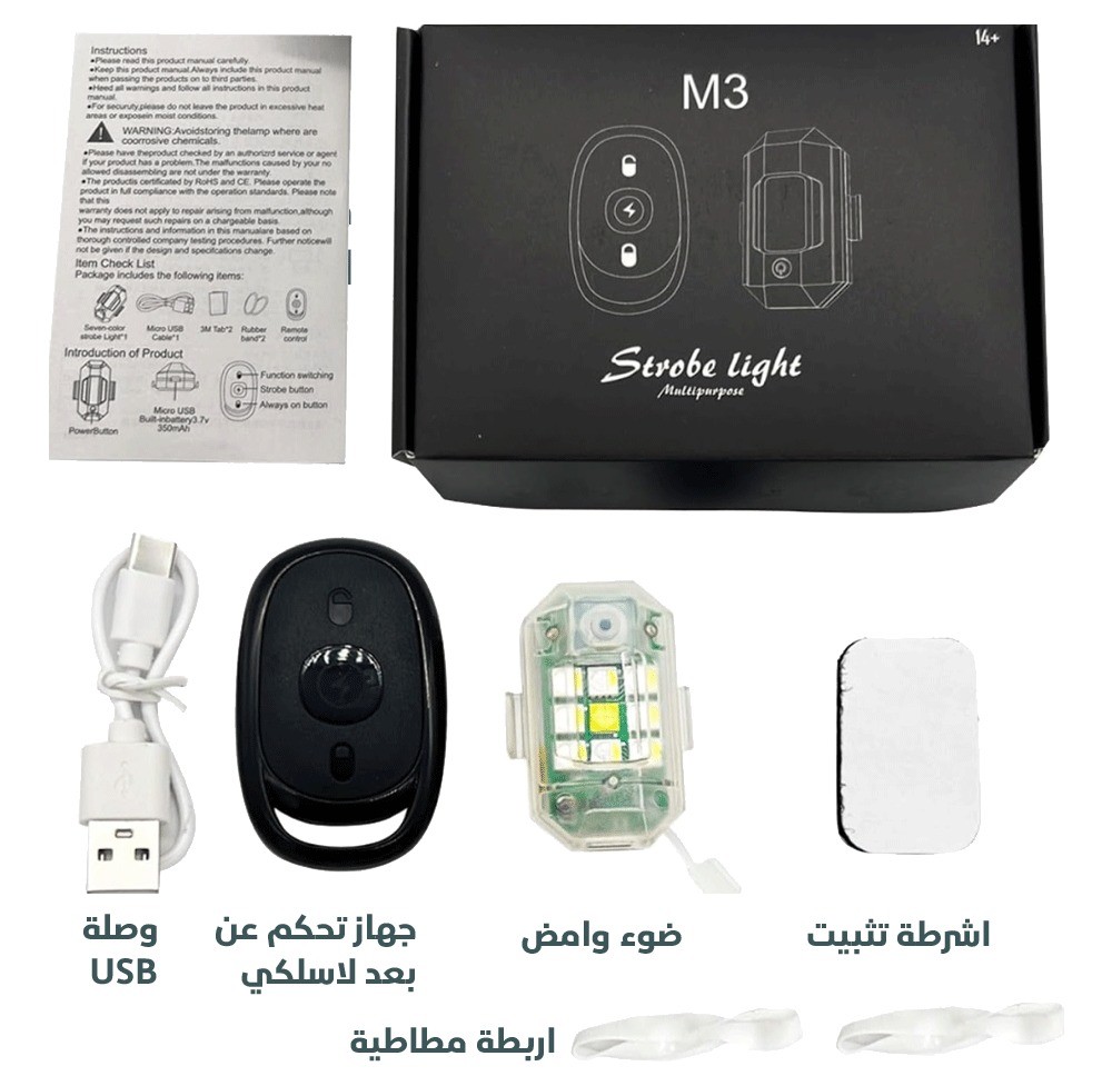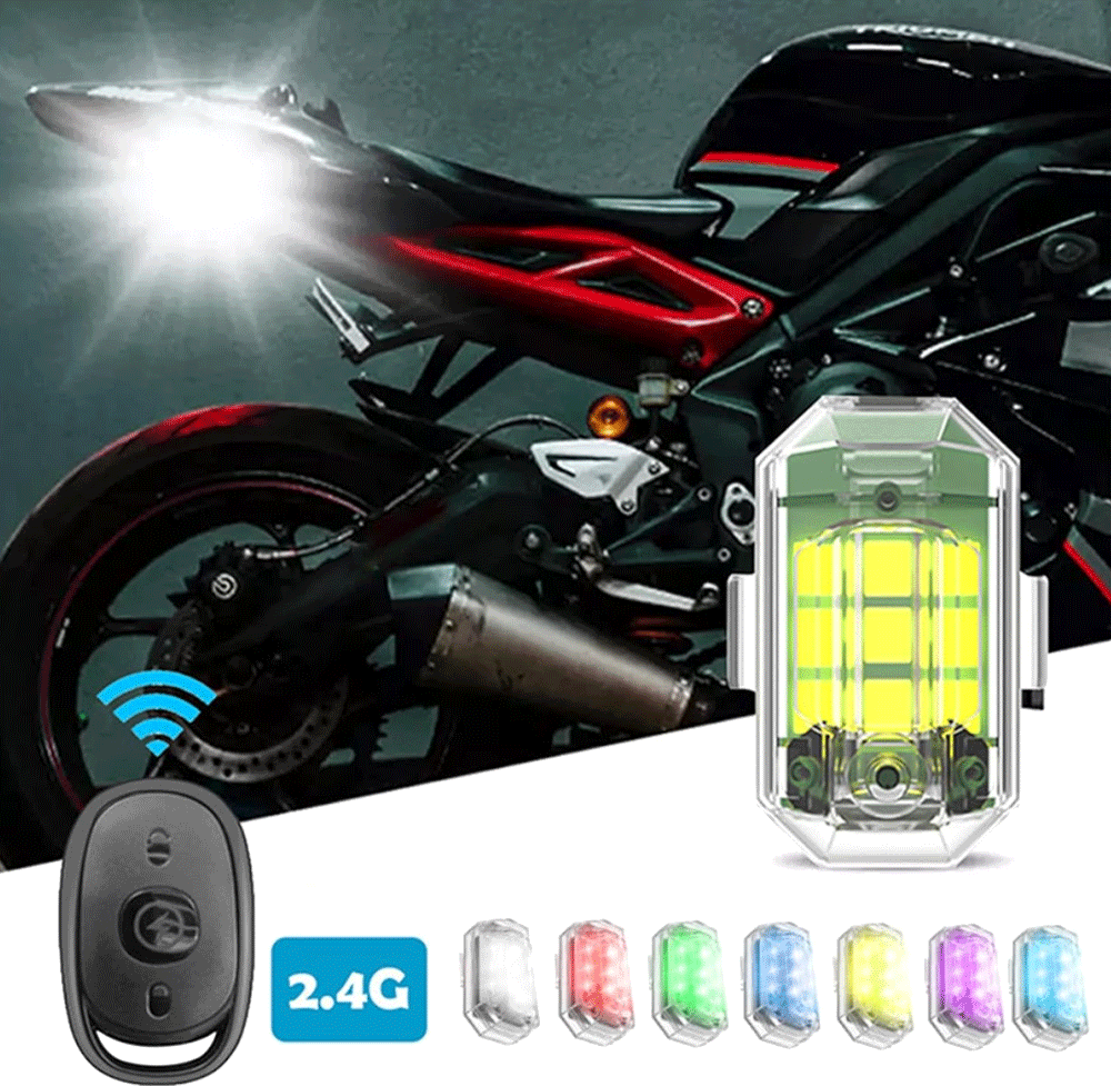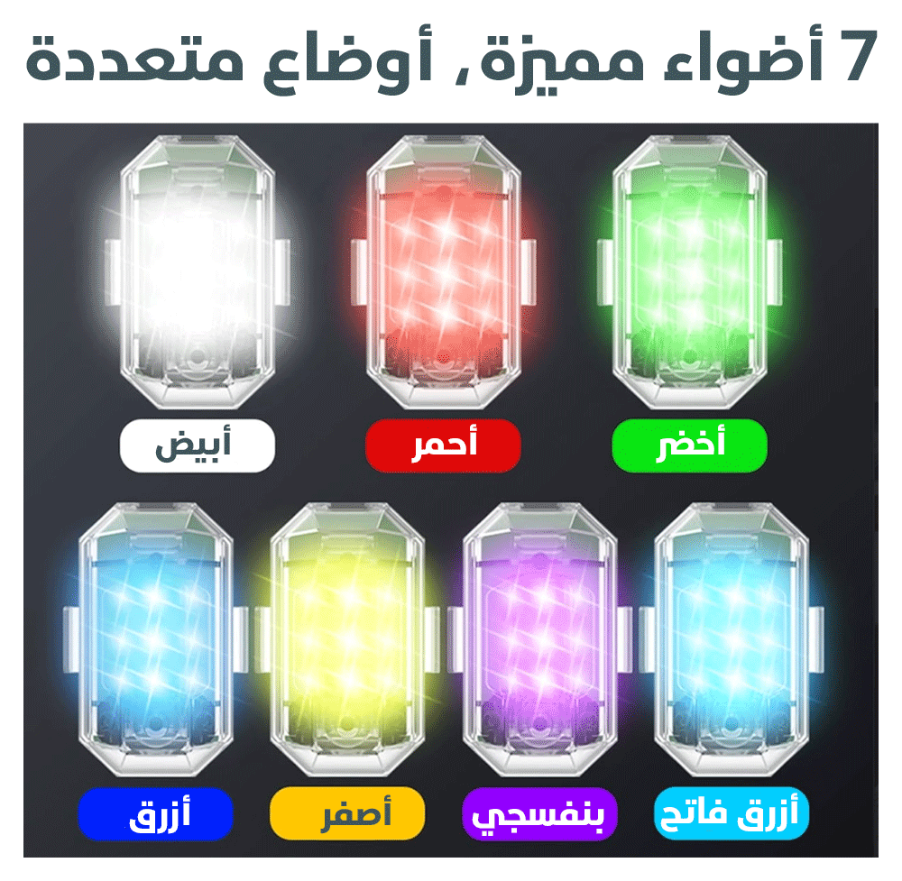 مصباح التحذير LED اللاسلكي مع ريموت كنترول هو الحل المثالي لزيادة الأمان والرؤية في جميع الظروف. يتميز بإضاءة قوية متعددة الألوان تصل إلى 7 ألوان مختلفة، مع أنماط وميض متنوعة يمكن التحكم بها بسهولة عن بُعد. صُمم ليعمل بكفاءة عالية مع السيارات، الدراجات النارية، الطائرات بدون طيار، الطائرات الصغيرة، والمركبات المختلفة، مما يجعله أداة تحذير مثالية أثناء القيادة الليلية أو في حالات الطوارئ.