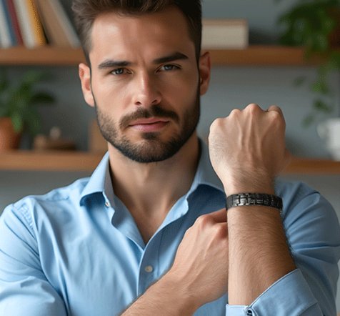 💎 تصميم "الخفاء" الأنيق: مصمم ليكون قطعة إكسسوار راقية تتناسب مع الساعات الرسمية أو الملابس اليومية، بحيث تحصل على فوائد العلاج المغناطيسي دون التضحية بأناقتك.