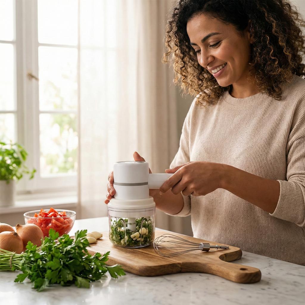 حوّل تحضير الطعام في المطبخ إلى تجربة سهلة وسريعة مع الخلاط الكهربائي المحمول اللاسلكي الصغير.