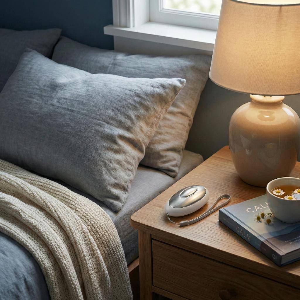 🧠 تقنية النبضات الدقيقة: يعمل على تحفيز نقاط عصبية محددة في اليد لإرسال إشارات استرخاء للدماغ، مما يهدئ التفكير المفرط فوراً.