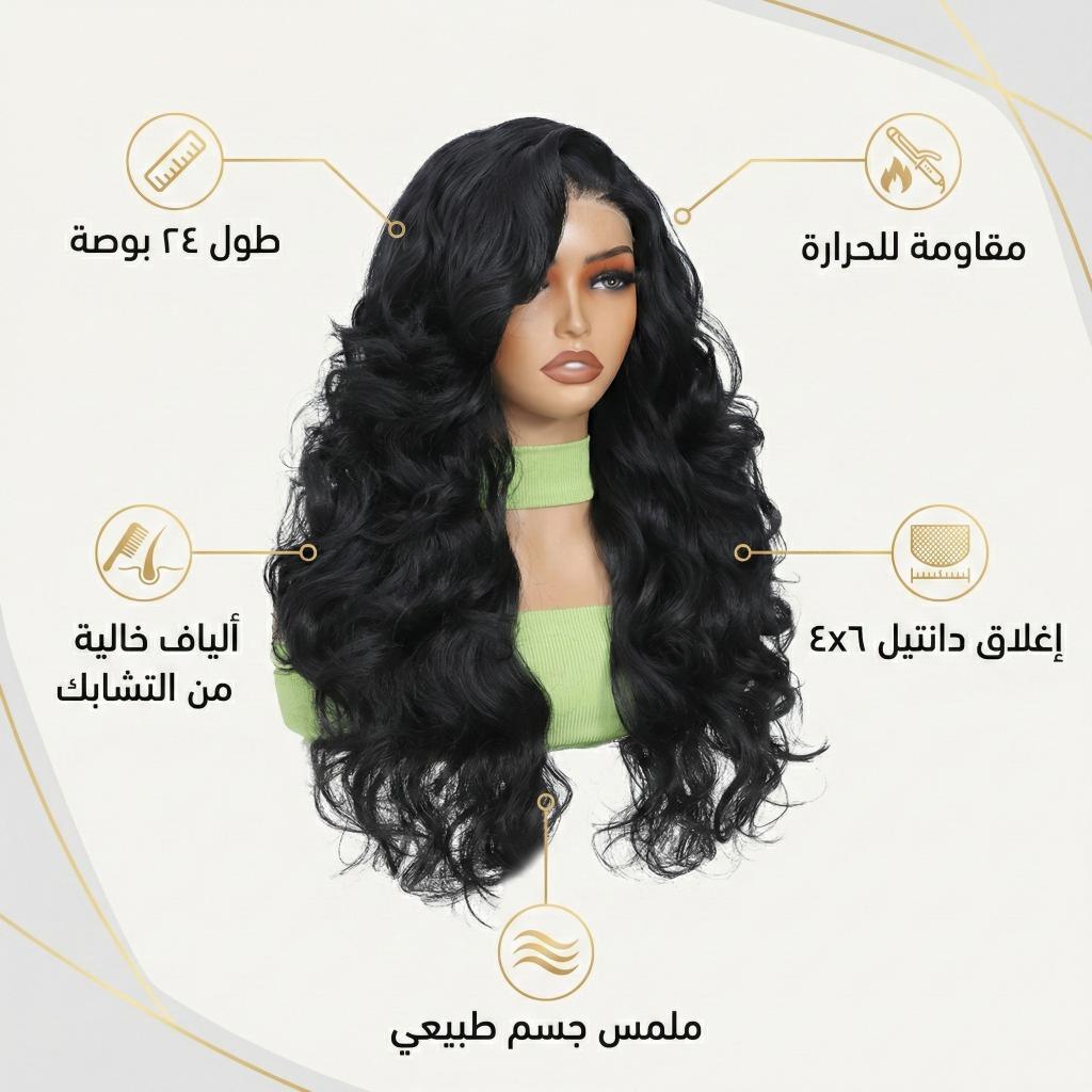 تأتي الباروكة بإغلاق دانتيل 4×6 يمنحك خط شعر طبيعي ومظهر احترافي عند التصفيف، كما أنها مصممة لتكون خالية من التشابك وسهلة التمشيط، مما يجعلها مثالية للاستخدام اليومي أو المناسبات الخاصة. اللون الأسود الكلاسيكي يمنحك إطلالة أنيقة تناسب جميع الأذواق وأنماط المكياج والملابس.