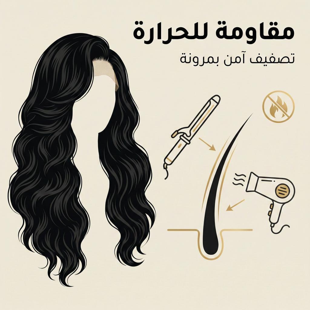 🔥 ألياف مقاومة للحرارة: مصنوعة من خامات عالية الجودة تتحمل الحرارة، مما يتيح لكِ كويها أو تجعيدها وتغيير الستايل دون خوف من التلف.