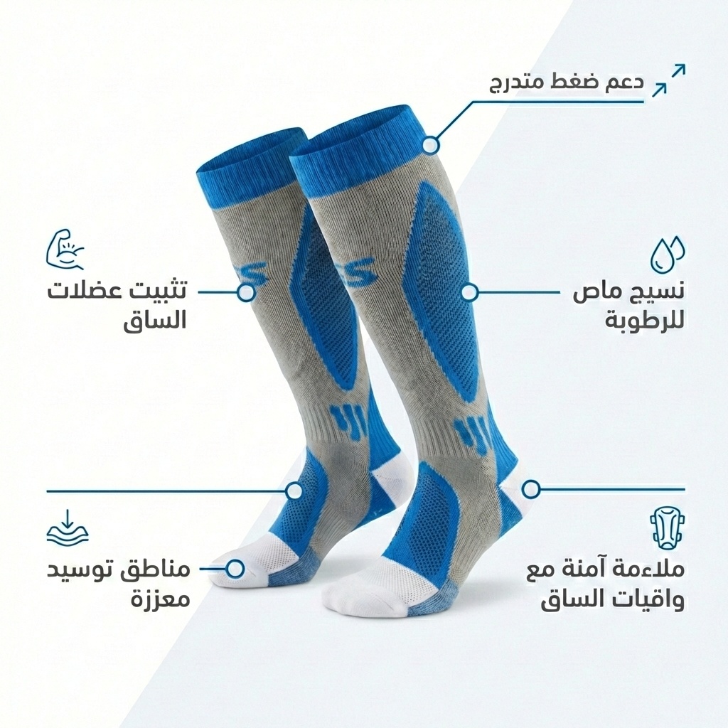 💪 دعم عضلي متطور: توفر ضغطاً مثالياً يدعم عضلات الساق، مما يقلل من الإجهاد ويحمي من الإصابات الرياضية.
