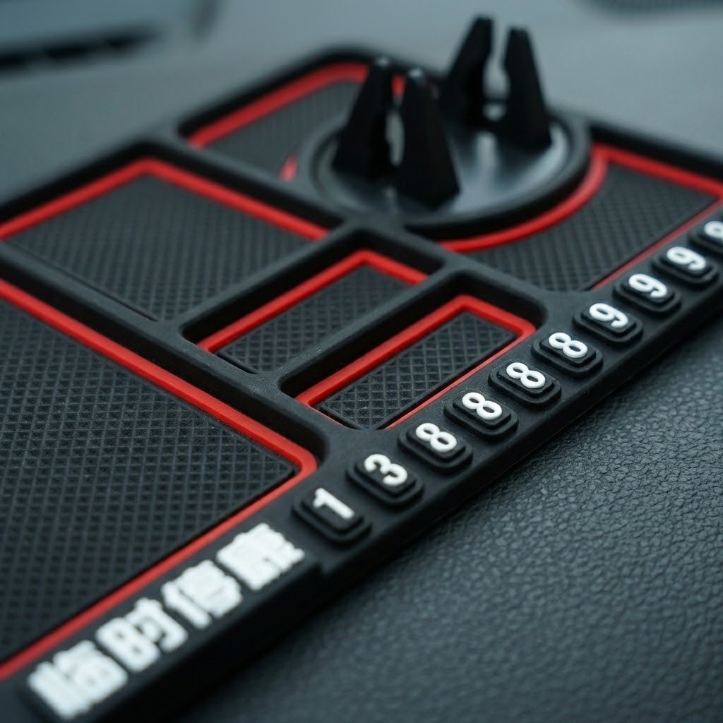 🌀 تصميم مرن ومتعدد المهام: بفضل مرونتها العالية، تتشكل الحصيرة لتناسب انحناءات أي لوحة قيادة، وتعمل كحامل ثابت للأجهزة أثناء الملاحة، وكمساحة آمنة لوضع المفاتيح، العملات المعدنية، والنظارات الشمسية دون ضوضاء أو انزلاق.