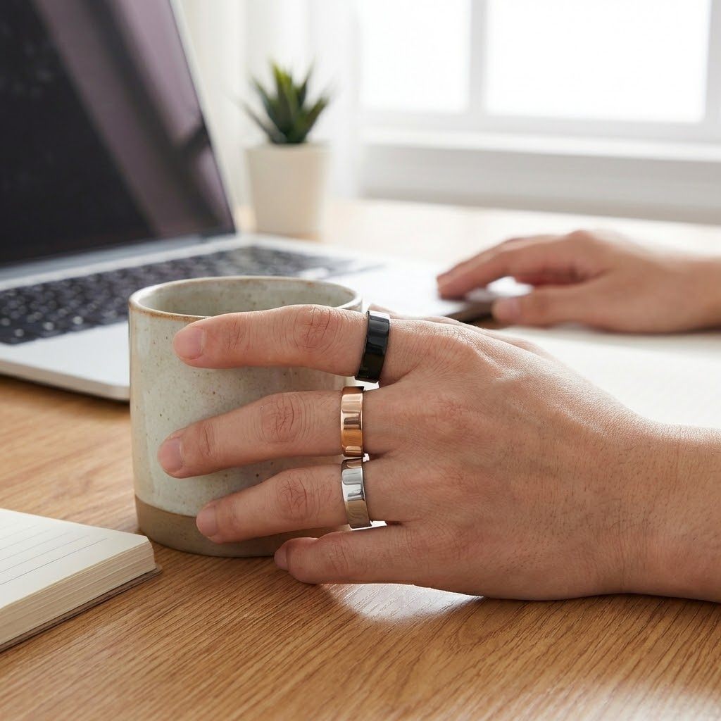 💍 خاتم "فيدجيت" النحاسي (أناقة عصرية وأداة ذكية لراحة البال)