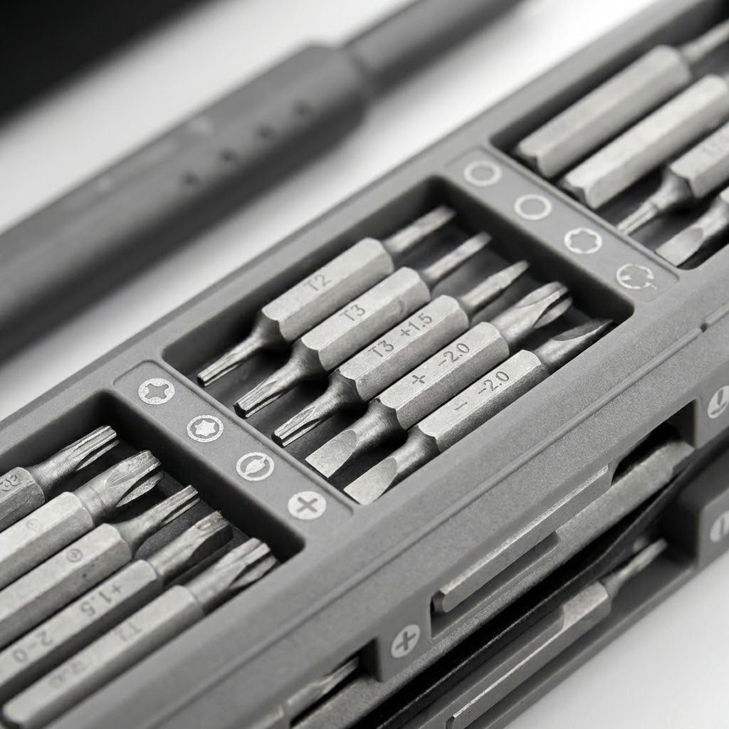 🔩 تنوع مذهل (تغطية شاملة): تضم المجموعة تشكيلة واسعة من الرؤوس تشمل (Phillips، المسطحة، Torx، وغيرها)، مما يجعلها متوافقة مع جميع الأجهزة الإلكترونية المعقدة مثل هواتف iPhone، أجهزة اللابتوب، والكاميرات.