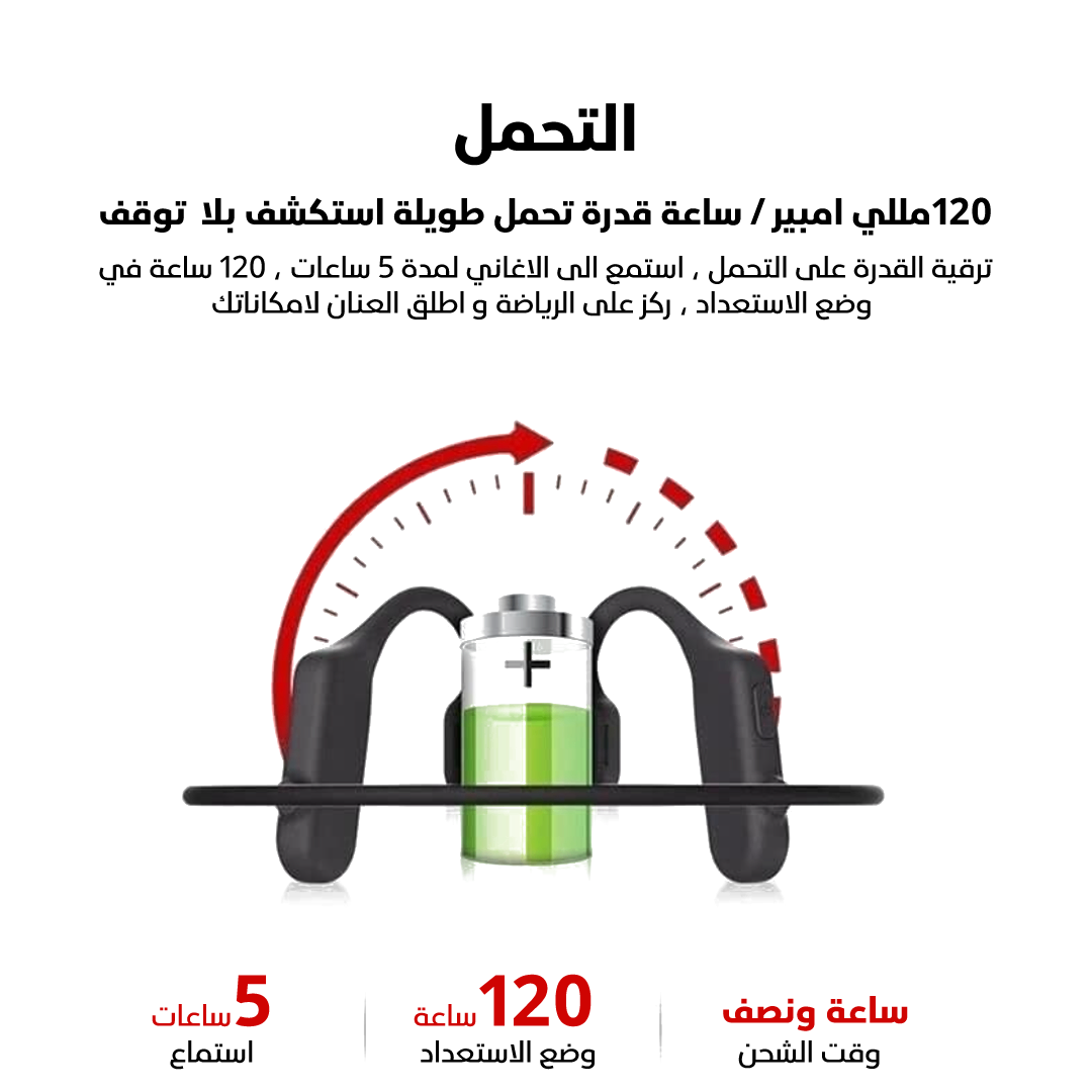 تعمل من 6-8 ساعات| خفيفة الوزن| وضع التشغيل يصل 220 ساعة| لا توضع داخل الأذن ولكن على مدخل الأذن بدون ألم ولراحة أكبر
