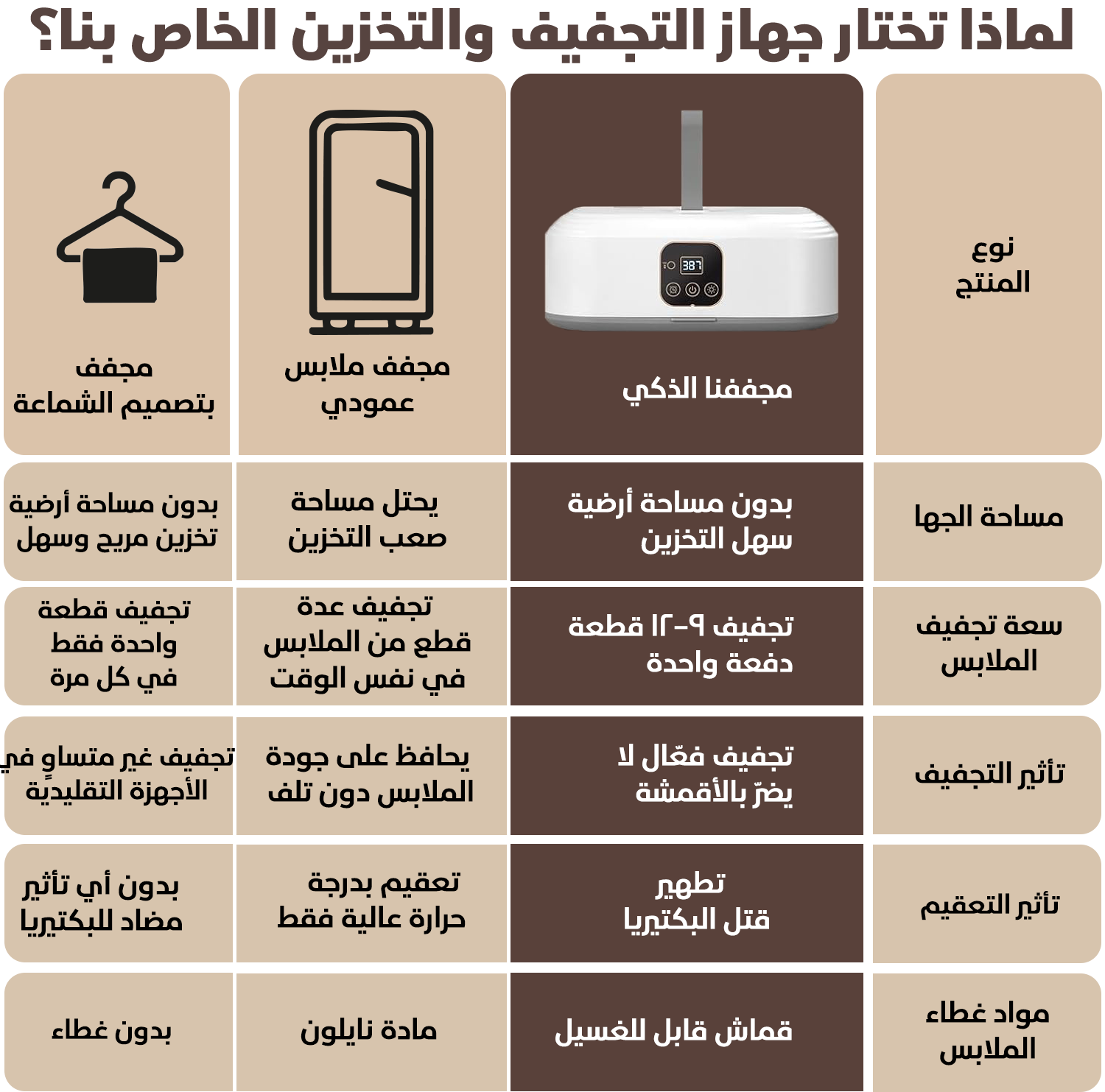 🔇 تشغيل "هامس" وهادئ: صُممت بمحرك ذكي يعمل بصوت منخفض جداً، مما يتيح لك تشغيلها أثناء الليل أو في غرف النوم دون أي إزعاج، لتستيقظ بملابس جاهزة تماماً للارتداء.