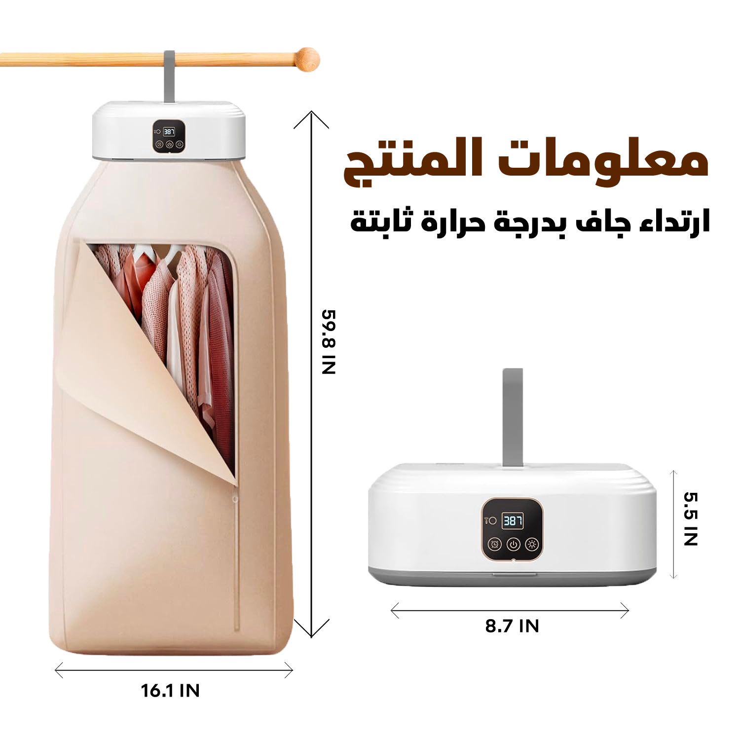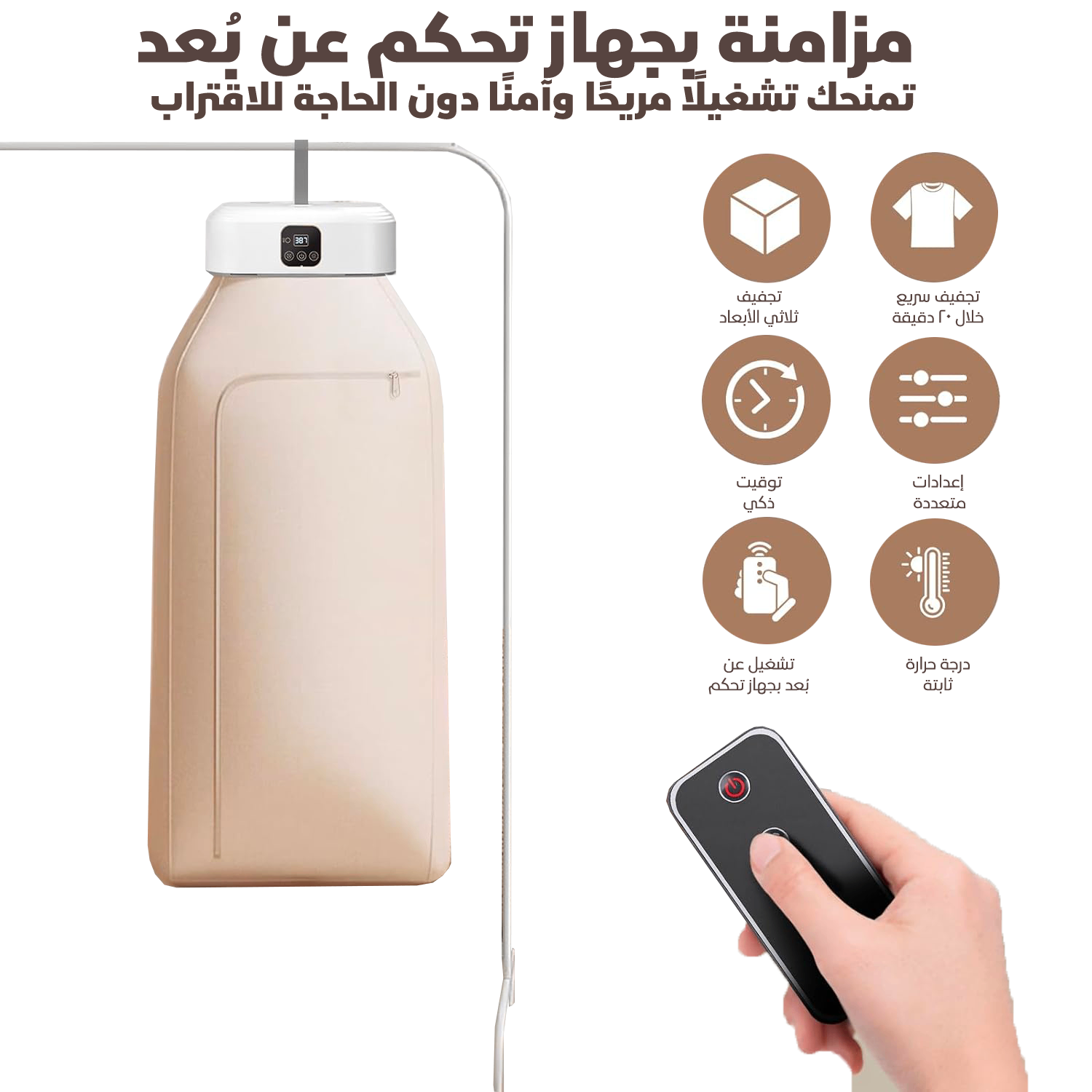 🌬️ المجففة المحمولة الذكية (ملابس جافة، معقمة، ومنعشة في دقائق)