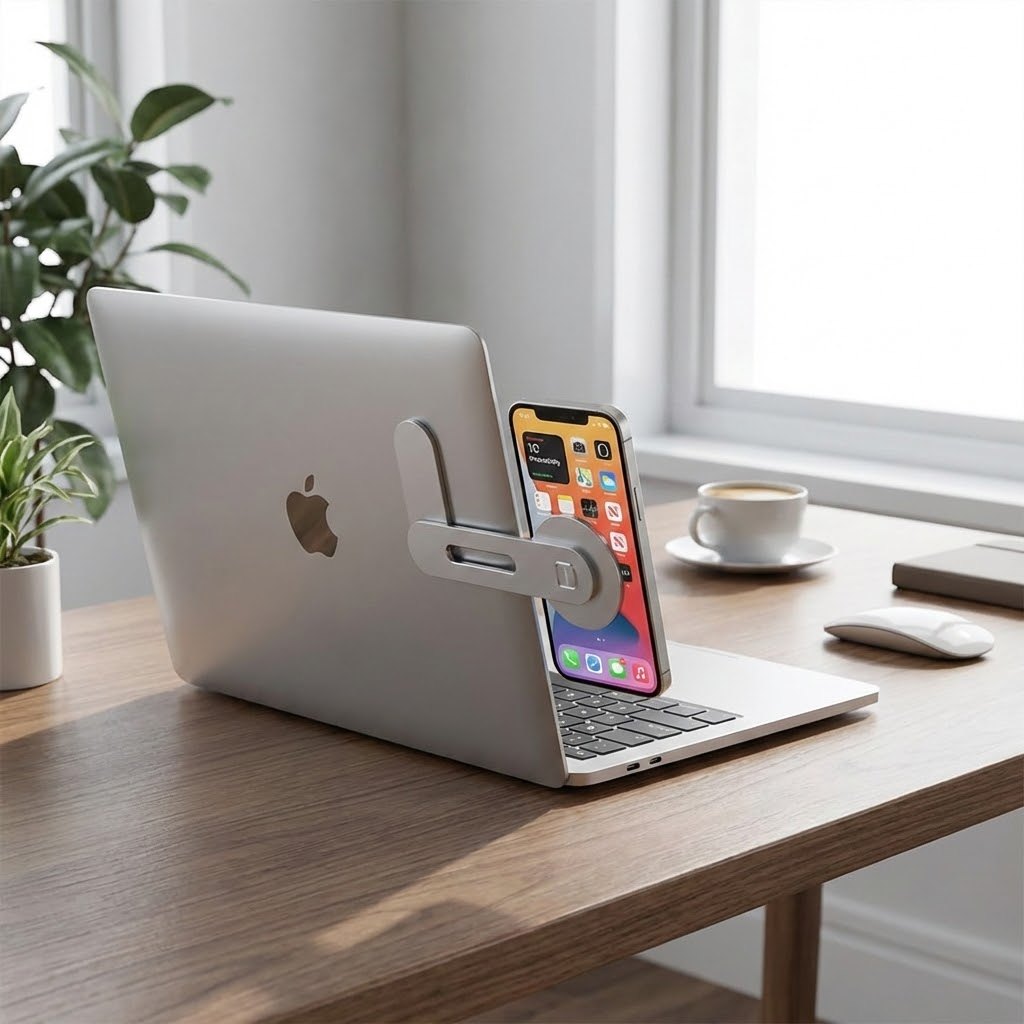 🏗️ هيكل من "سبائك الألومنيوم" الفاخرة: يتميز بتصميم معدني متين وأنيق يجمع بين القوة وخفة الوزن، مما يضمن ثباتاً مطلقاً للهاتف مع مظهر عصري ينسجم تماماً مع أجهزة اللابتوب الحديثة.