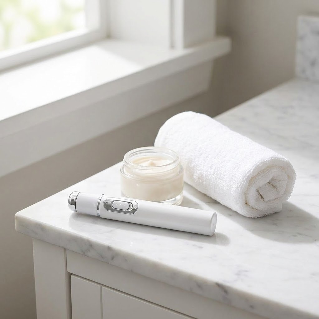 باستخدام طول موجي محدد للضوء الأزرق يبلغ 415 نانومتر، يقضي القلم بفعالية على البكتيريا المسببة لحب الشباب (C. acnes) في عمق المسام، مما يمنع ظهور البثور مستقبلاً. يوفر العلاج الحراري المدمج عند درجة حرارة 42 درجة مئوية إحساساً دافئاً ولطيفاً يعزز إزالة السموم اللمفاوية، ويقلل الالتهاب، ويخفف الألم المصاحب للبثور النشطة. علاوة على ذلك، تساعد تقنية التيار الكهربائي الحيوي الدقيق (BIO micro-electric current) على شد البشرة المترهلة، تقليص المسام المتضخمة، وتحفيز تجديد الكولاجين، مما يقلل بشكل واضح من مظهر الندبات والتجاعيد للحصول على بشرة أكثر نعومة وشباباً.